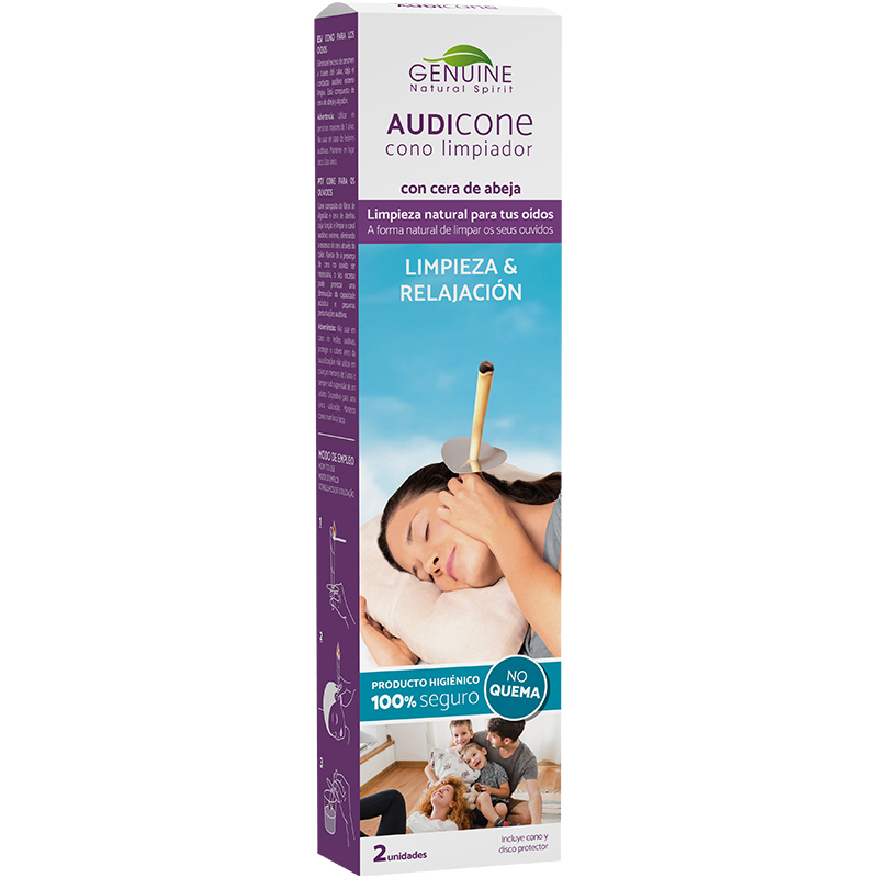 El Cono Limpieza de Oído Genuine es una apuesta natural de velas para la limpieza de los oidos, compuestos por algodón 100% y también cera de abeja. Contienen  una marca de seguridad para la correcta utilización de los conos y no introducirlos de forma excesiva. También disponde de una marca para introducir el disco asi como de un filtro interno.