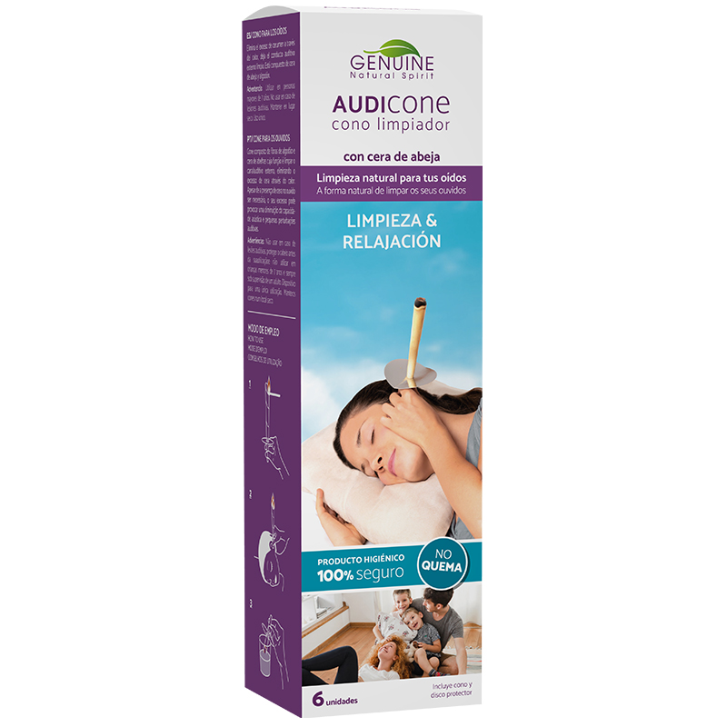El Cono Limpieza de Oído Genuine es una apuesta natural de velas para la limpieza de los oidos, compuestos por algodón 100% y también cera de abeja. Contienen  una marca de seguridad para la correcta utilización de los conos y no introducirlos de forma excesiva. También disponde de una marca para introducir el disco asi como de un filtro interno.