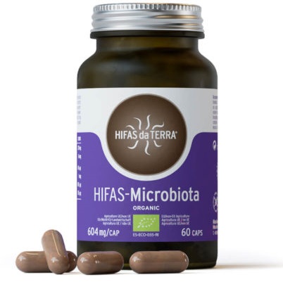 Hongos medicinales con efecto prebiótico que nutren la microbiota intestinal y promueven el desarrollo y el establecimiento de una microbiota intestinal saludable. La suplementación con Hifas-Microbiota actúa de forma equilibrada respetando la poblaciones microbianas autóctonas saludables del individuo.