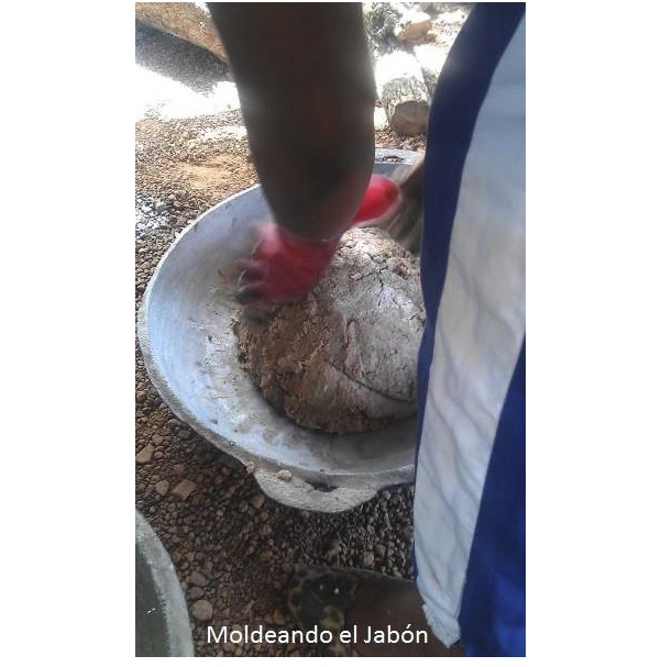 No se utiliza sosa caústica. Se prepara con ceniza siguiendo una receta ancestral transmitida de madres a hijas desde hace miles de años mezclando agua de ceniza, manteca de karité y aceites puros. Sin detergentes, sin perfumes ni colorantes. Pureza absoluta tal y como procede de las cooperativas.