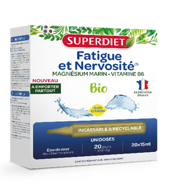 Agua purificada, extracto de agua del mar (rica en Magnesio) 1 665 mg cuyo Magnesio (150 mg* – 40% de los VRN), Zumo concentrado de limón, aroma natural de limón, Vitamina B6 1,4 mg* (100% de los VRN).