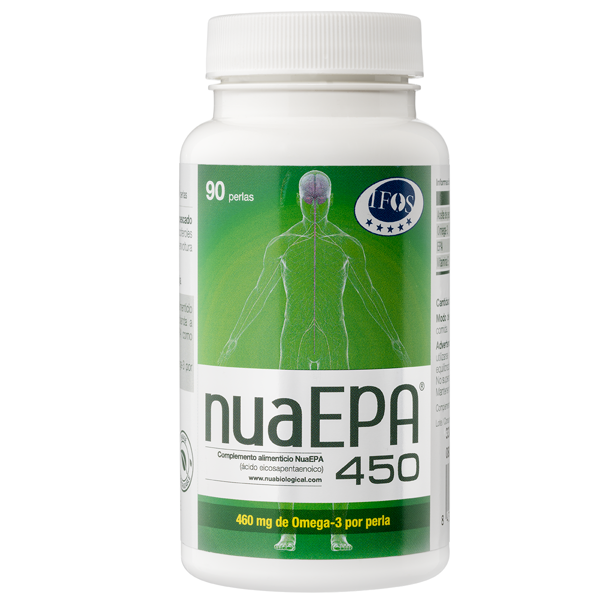NuaEPA es un complemento alimenticio muy puro y concentrado a base de omega-3 (procedente de pescado). Una perla de NuaEPA 450 contiene aprox. 93% de omega-3, de los cuales más de un 88% son EPA.