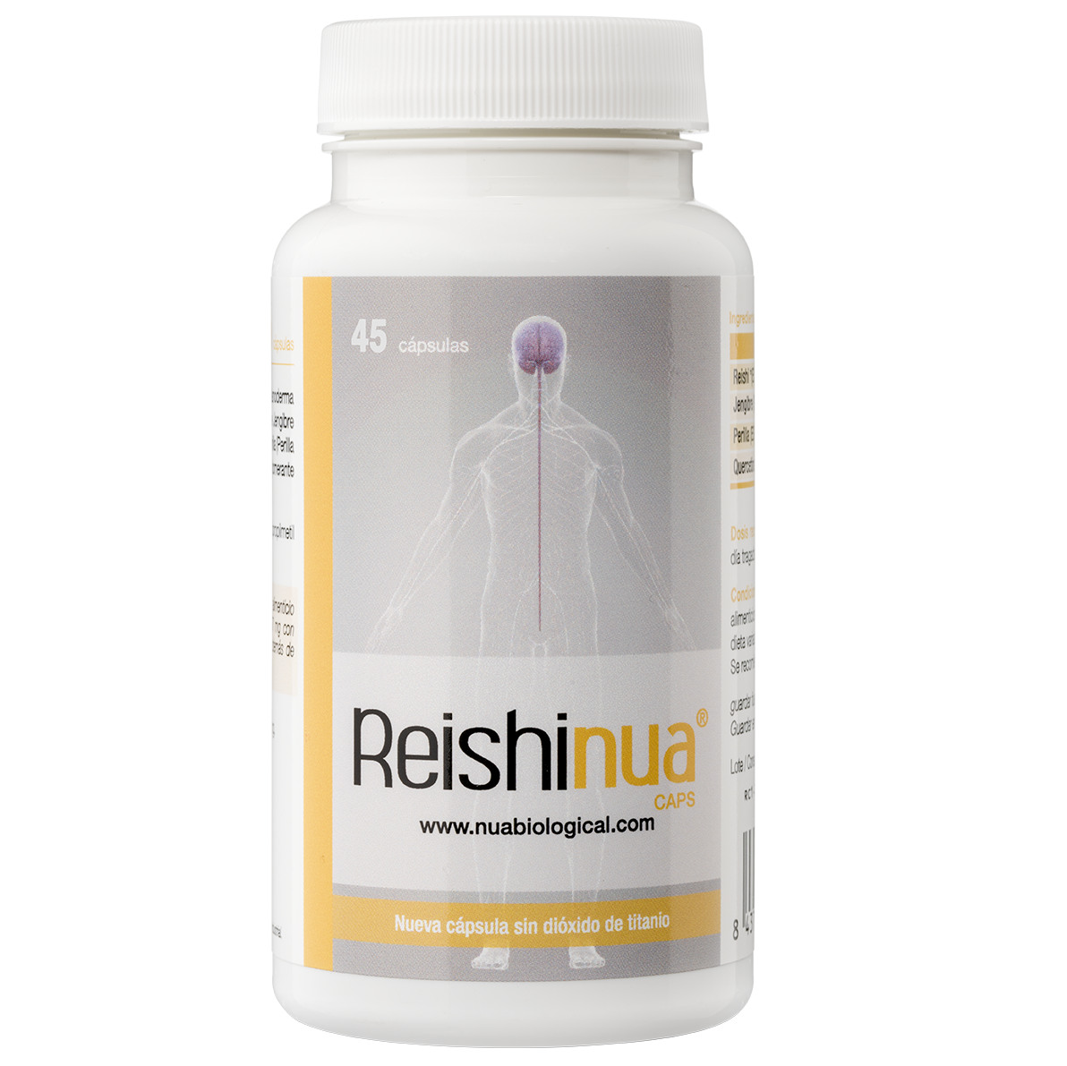 Extracto seco de Reishi (350 mg Ganoderma lucidum), ES de Jengibre (50 mg de Zingiber officinalis), ES de Perilla (50 mg de Perilla frutescens) y Quercetina (50 mg); Antiaglomerante (dióxido de silíceo).