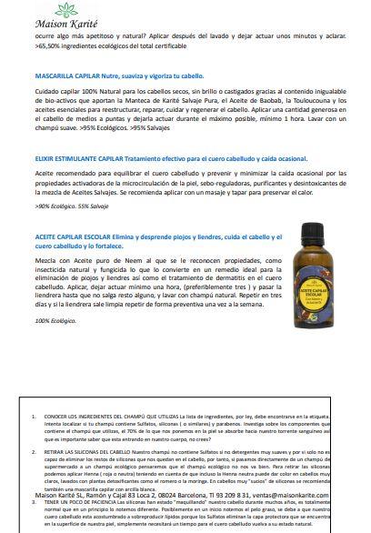Hemos escogido con suma atención todos los ingredientes de nuestro champú para conseguir una fórmula totalmente derivada de vegetales, con tensioactivos anfóteros, -los limpiadores más suaves y respetuosos con el ph de la piel y el cabello-, espesantes y principios activos naturales de super-alimentos, como el alga espirulina y preservativos naturales procedentes de fermentos lácticos de coco y rábano para mantener un cabello limpio, brillante y un cuero cabelludo sano y equilibrado.